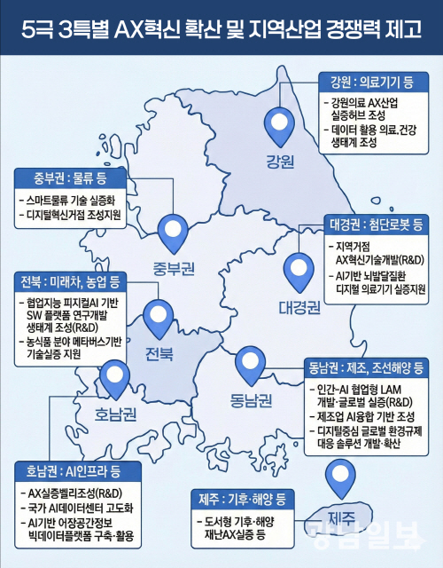 Á¤ºÎ°¡ ³»³â È£³²±Ç¡¤´ë°æ±Ç¡¤µ¿³²±Ç¡¤ÀüºÏ µî 4°³ ±Ç¿ª¿¡¼ ÃÑ 3Á¶1000¾ï¿ø ±Ô¸ðÀÇ ÀΰøÁö´É(AI) Àüȯ(AX) ÇÁ·ÎÁ§Æ®¸¦ º»°Ý ÃßÁøÇÑ´Ù.