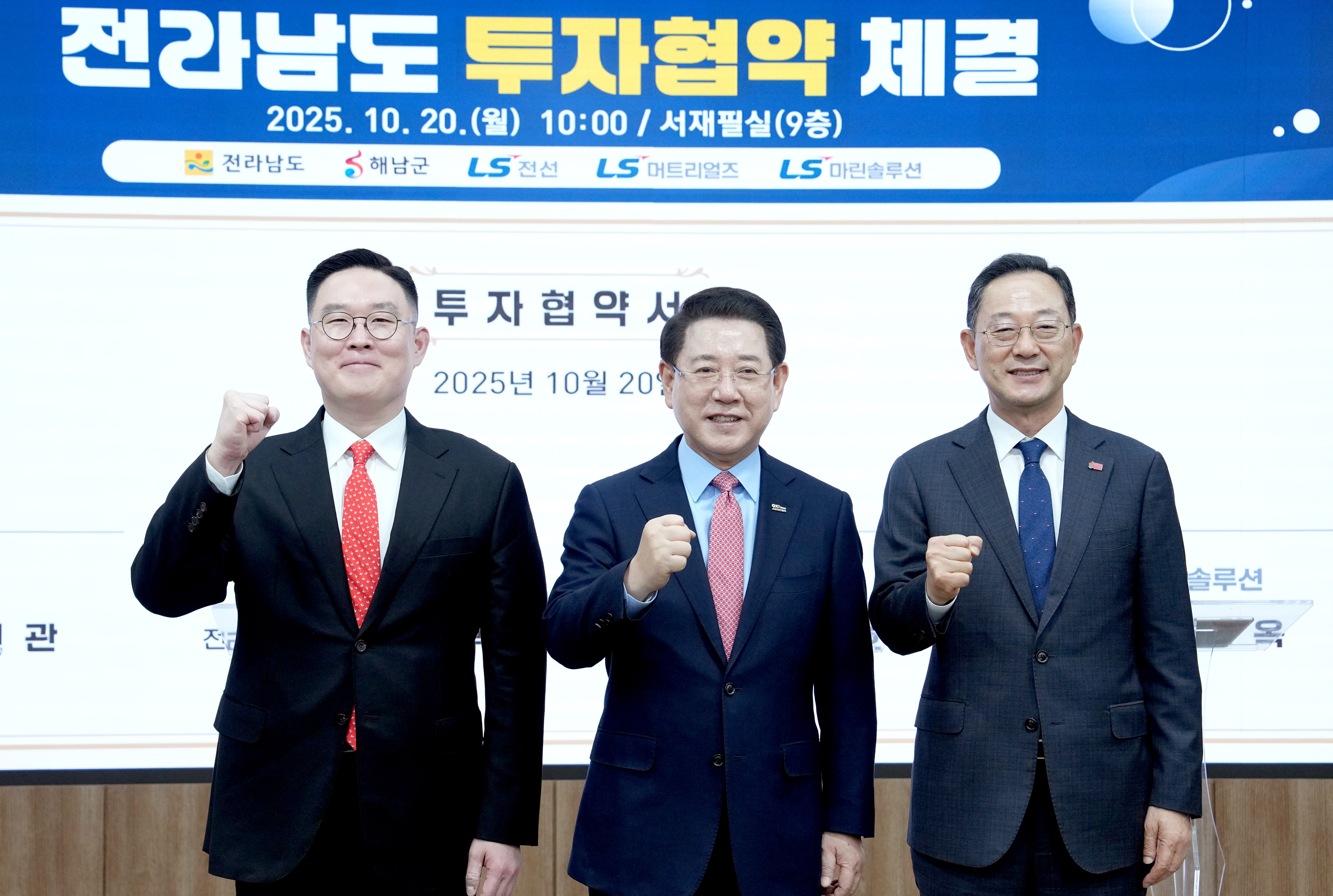 (Àü³²µµ ÇØ»ódz·Â ¼³Ä¡Ç׸¸ ±¸ÃàÀ» À§ÇÑ ÅõÀÚÇù¾à ü°á 2) ±è¿µ·Ï Àü¶ó³²µµÁö»ç°¡ 20ÀÏ µµÃ» ¼ÀçÇʽǿ¡¼ ±¸º»±Ô ¢ßLSÀü¼± ´ëÇ¥ÀÌ»ç, È«¿µÈ£ ¢ßLS¸ÓÆ®¸®¾óÁî ´ëÇ¥ÀÌ»ç, ±èº´¿Á ¢ßLS¸¶¸°¼Ö·ç¼Ç ´ëÇ¥ÀÌ»ç, °À§¿ø Àü³²µµ °æÁ¦ºÎÁö»ç, ¸íÇö°ü ÇØ³²±º¼ö µî °ü°èÀÚ¿Í ÇØ»ódz·Â Àü¿ë¼³Ä¡Ç׸¸ Á¶¼º ¹× ÄÉÀÌºí ¼³Ä¡¼± °ÇÁ¶¸¦ À§ÇÑ ÅõÀÚÇù¾àÀ» ü°áÇϰí ÀÖ´Ù.